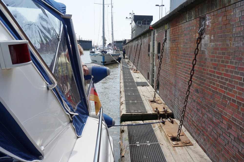 Im Yachthafen Brunsbüttel, gleich hinter der Schleuse finden wir ein Plätzchen. Nun sind wir mit den ganz großen Pötten auf Tuchfühlung und zwar die nächsten 100 km, so lang ist der NOK. Er wurde 1895 von Kaiser Wilhelm II. eröffnet und ist heute nach dem Suez- und Panamakanal der am stärksten befahrene Weltschifffahrtskanal. Und wir sind mittendrin! Ein wenig mulmig ist uns schon zumute, es wird sicher spannend.