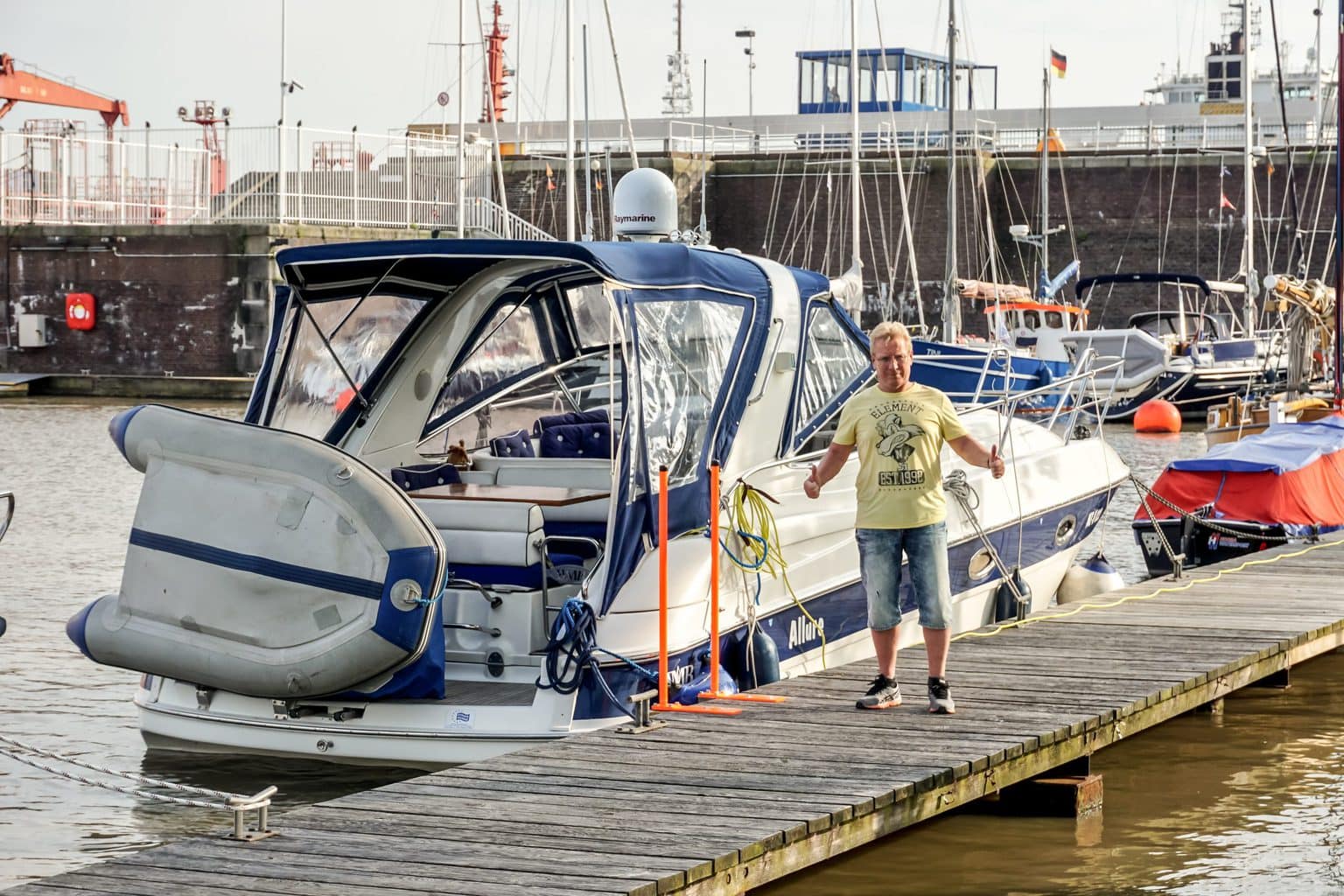 Im Yachthafen Brunsbüttel, gleich hinter der Schleuse finden wir ein Plätzchen. Nun sind wir mit den ganz großen Pötten auf Tuchfühlung und zwar die nächsten 100 km, so lang ist der NOK. Er wurde 1895 von Kaiser Wilhelm II. eröffnet und ist heute nach dem Suez- und Panamakanal der am stärksten befahrene Weltschifffahrtskanal. Und wir sind mittendrin! Ein wenig mulmig ist uns schon zumute, es wird sicher spannend.