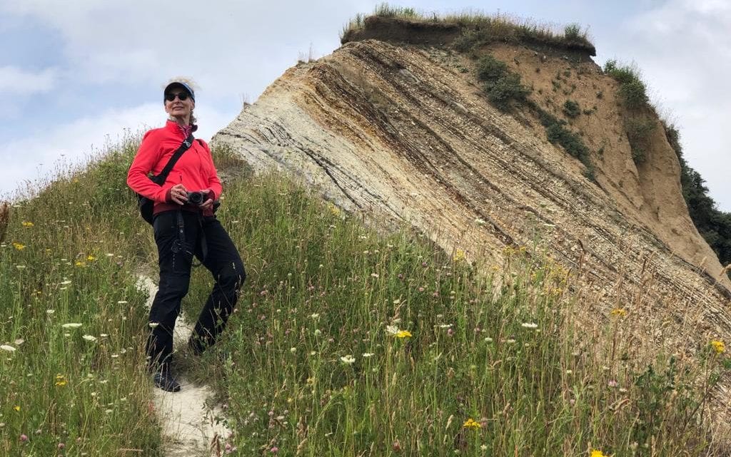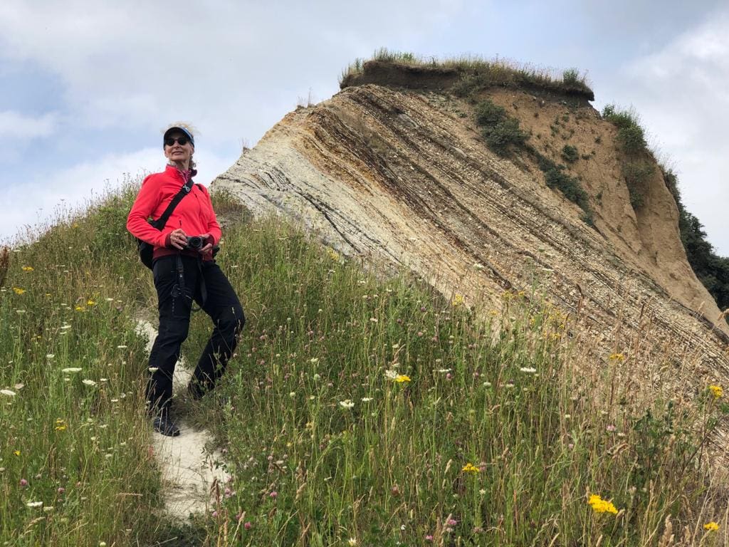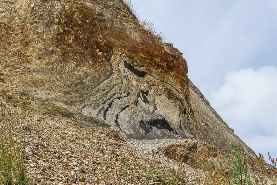 Die steilen Hänge der ‚Moler‘, mit den vielen Gesteinsfalten und dunklen Schichten mit vulkanischer Asche, entstanden vor 55 Mio Jahrenwährend der Eiszeit. Wir sind beeindruckt, auch ohne eine Fossilie aus der Kreidezeit gefunden zu haben.