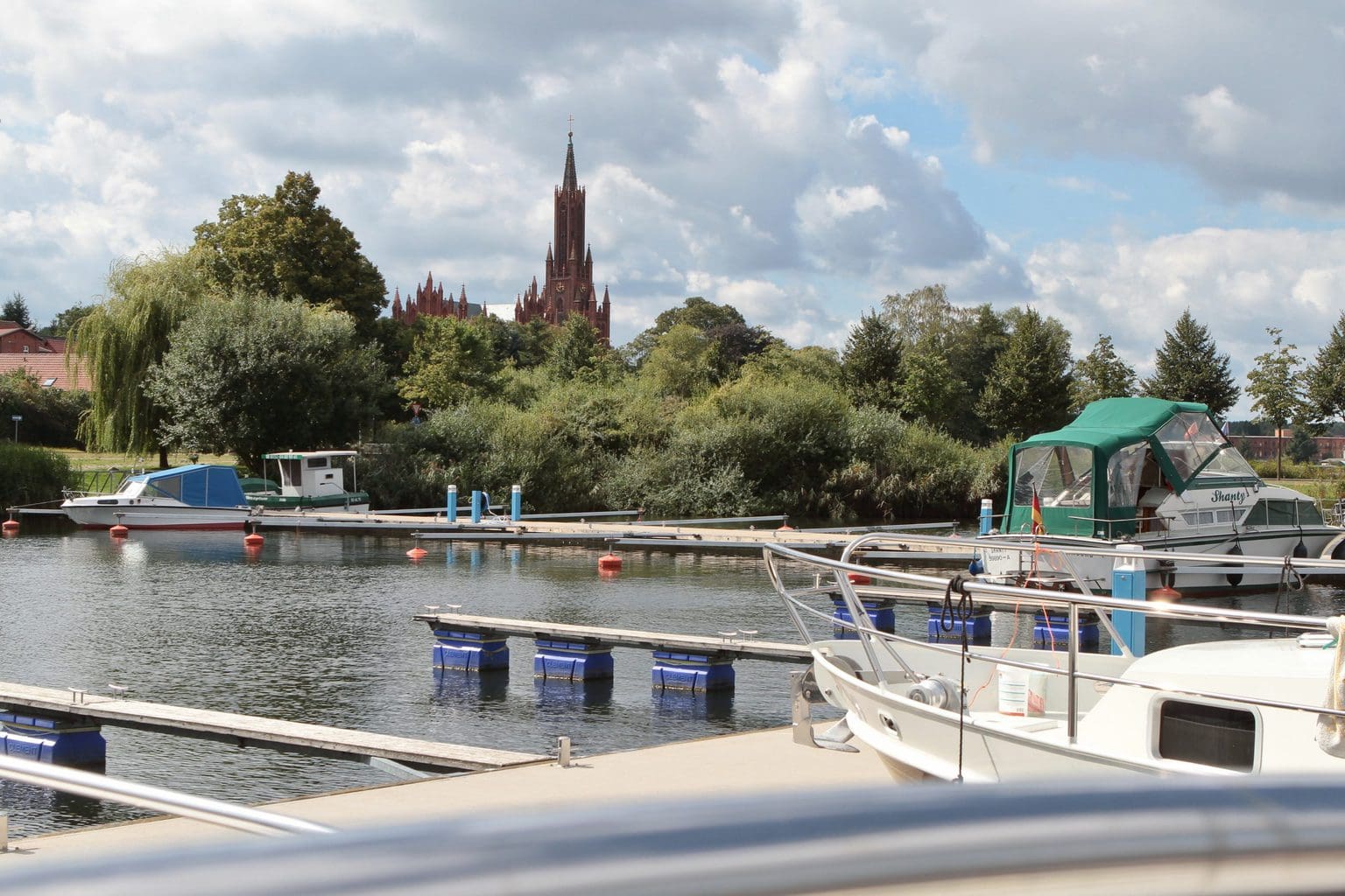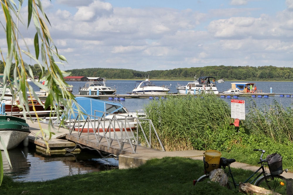 Wir legen heute nicht im turbulenten Stadthafen Malchow an, sondern auf der gegenüberliegenden Seite in Klosternähe am Wasserwanderrastplatz.