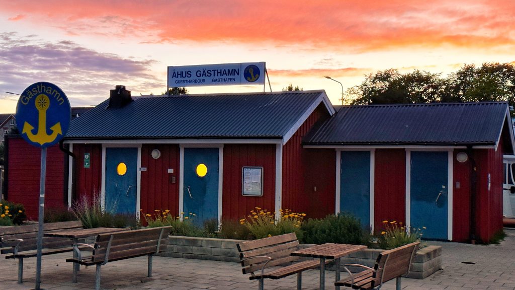 Mehr InformationenDurch das betonnte Fahrwasser passieren wir den Handelshafen Åhus an der Mündung der Helge å in die Hanöbucht und finden einen Liegeplatz weiter flussaufwärts an Steuerbord im Åhus Gästhamn.