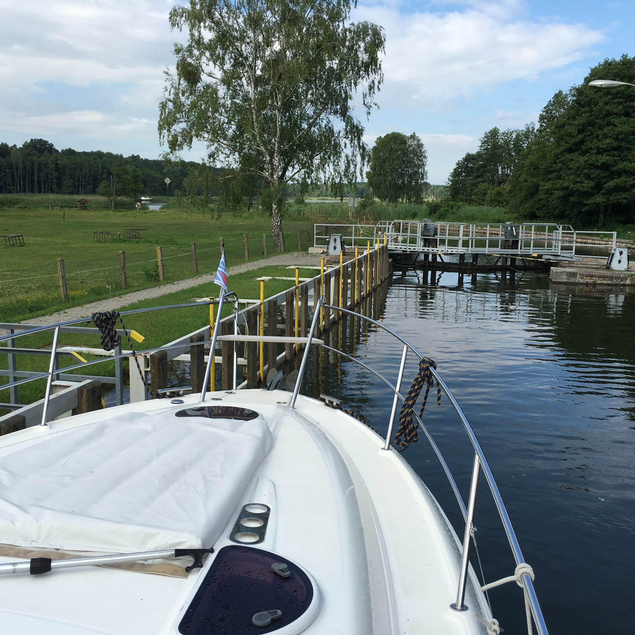Die Templiner Gewässer werden immer enger und urwüchsiger, noch eine Schleuse, die „Templiner Schleuse“, und wir haben’s geschafft.
