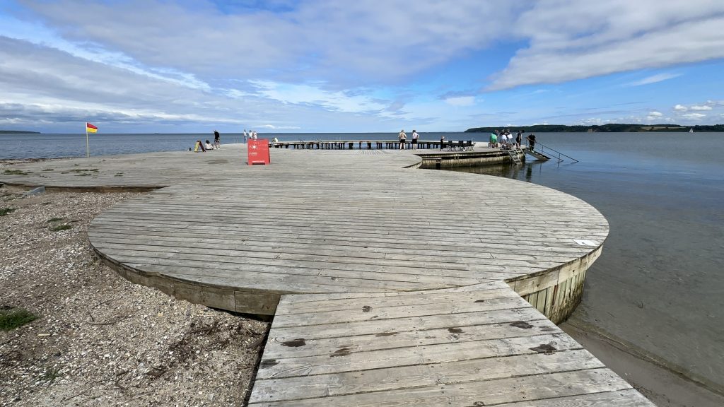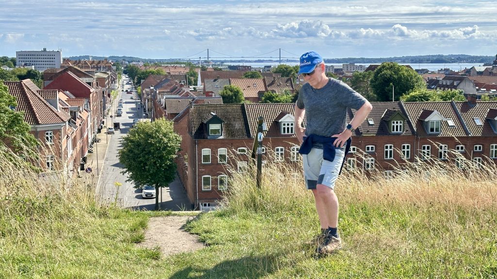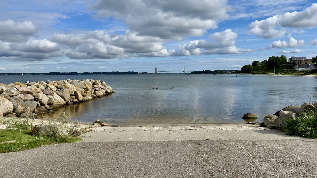 … etwas außerhalb der Stadt … mit einer grandiosen Aussicht auf den Lillebælt und unseren nächsten Zielhafen: Middelfart – hinter der „Nye Lillebæltsbro“.