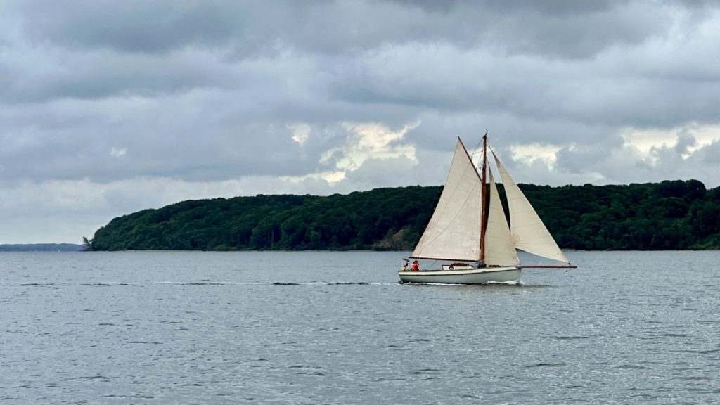 Erst um 10:30 Uhr hörte es auf zu tröpfeln, es klarte auf – also schnell „Leinen los“ in Vejle, zurück durch den malerischen Vejlefjord und weiter in den Kleinen Belt.