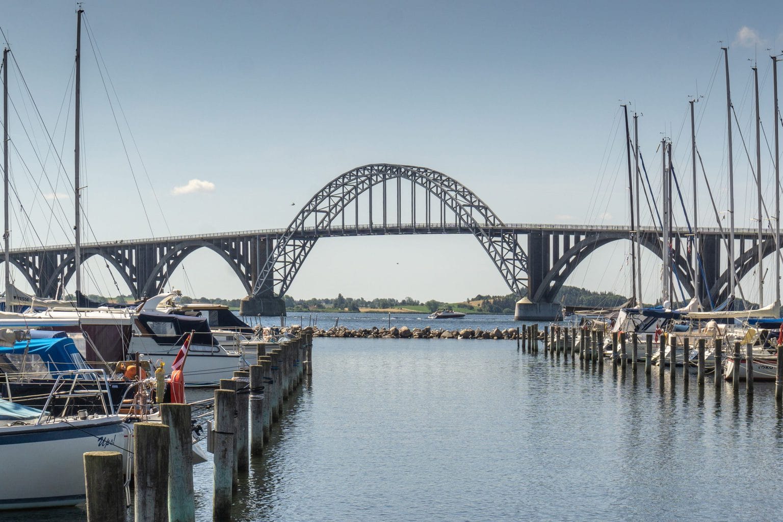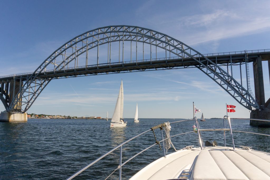 Jetzt geht’s mit Minimalbesetzung (Captain und Smutje) weiter – heute um Südseeland herum nach ‚Kalvehave‘. Der beschauliche Yachthafen belohnt mit einem tollen Blick auf die imposante Dronning Alexandrines Brücke.