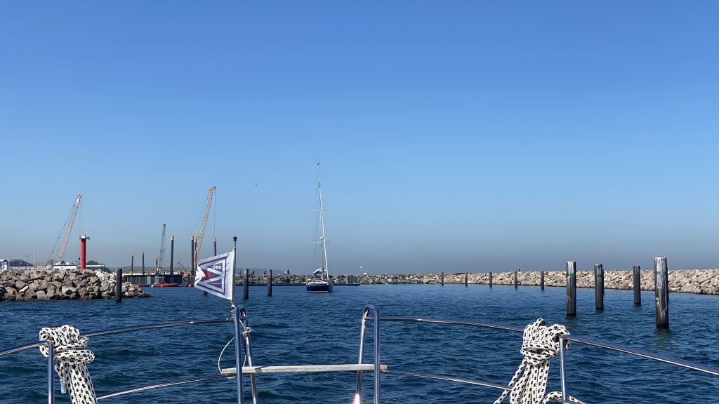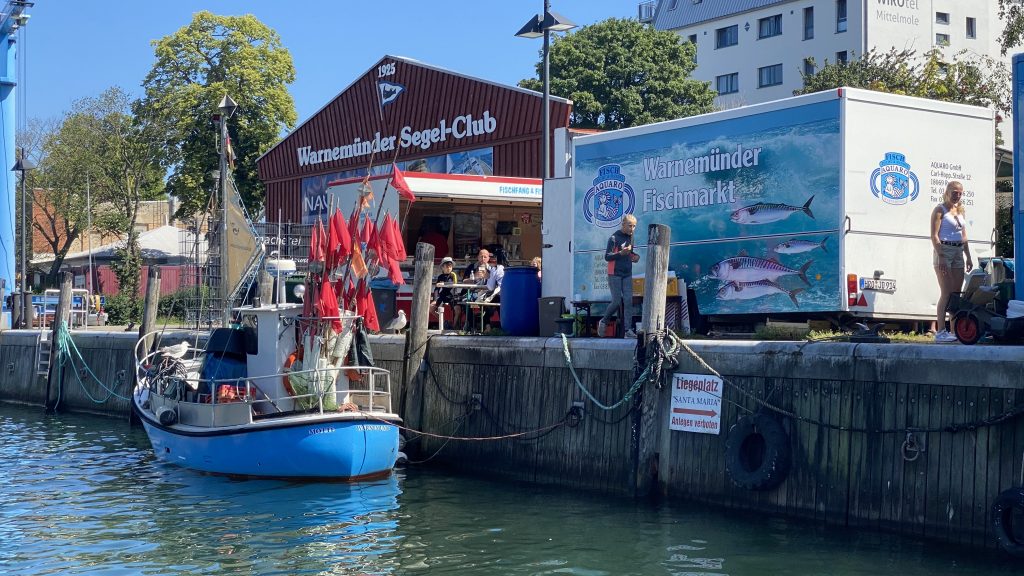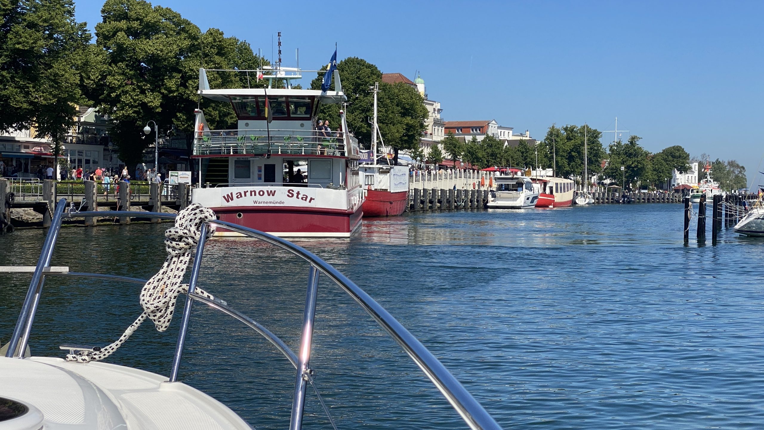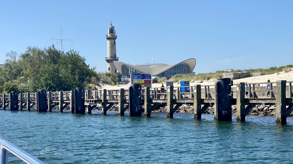 Bevor wir jedoch die Marina „Hohe Düne“ ansteuern, nehmen wir nach den Warnemünder Molen ‚Kurs hart steuerbord‘ auf den „Alten Strom„.