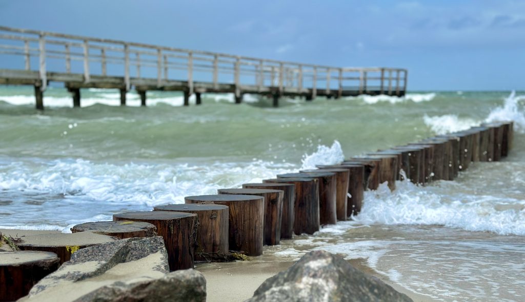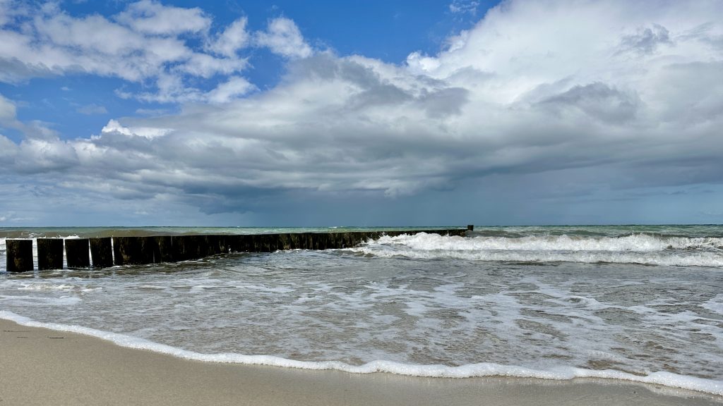 Windstärke 4, der Wind pfiff uns um die Ohren, die Gischt spritzte über die Buhnen, das Meer rauschte und die Sonne schien … ein perfekter Tag für einen Strandspaziergang … der Strand gehörte uns nahezu alleine.