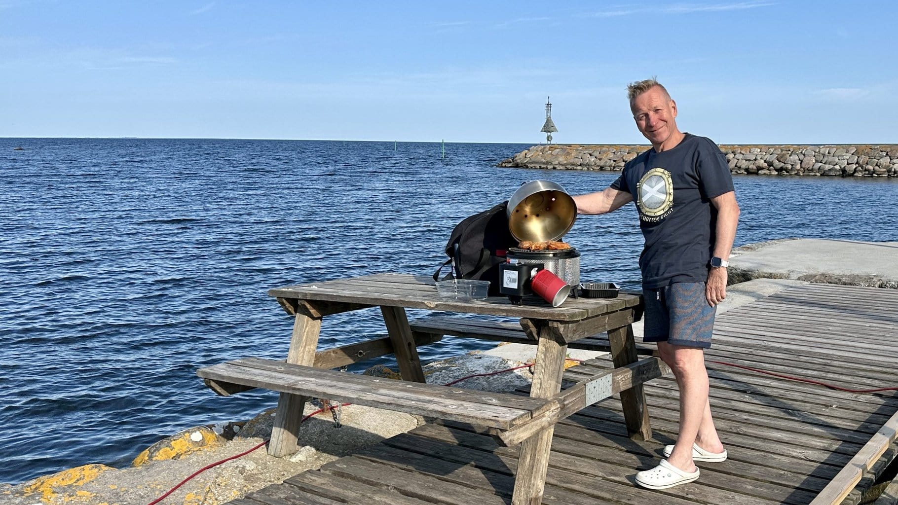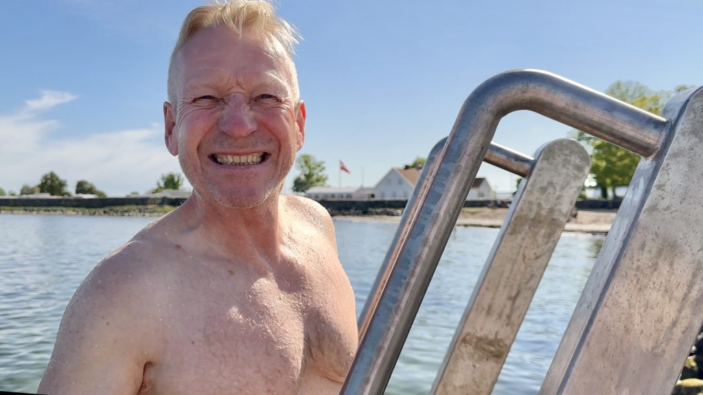 Erwartungsvoll lassen wir das Thermometer ins Wasser gleiten und erstarren wenig später: heute ist die Wassertemperatur in Kristianopel 12.9°C 😱 – erfrischend und straffend für die reife Haut, also rein ins kühle Nass.