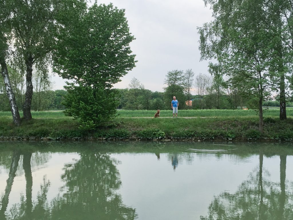 Auf der ‚Südstrecke‘, die wir befahren, verläuft der Kanal als hochgelegte Dammstrecke oberhalb der grünen Wiesen rechts und links von uns.