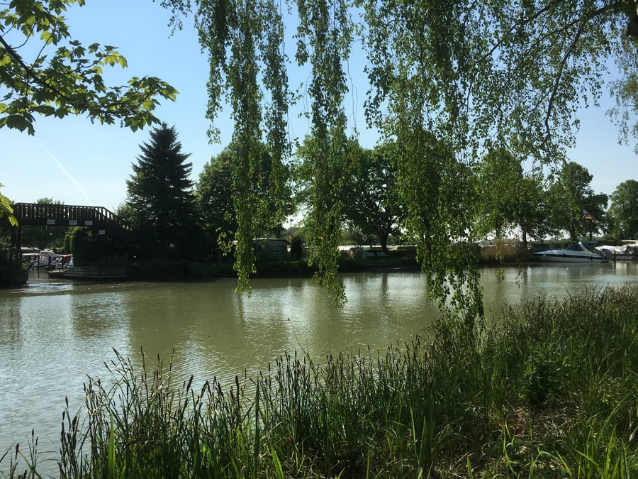 Um 15:30 Uhr Ankunft im Yachtclub KranenCamp Senden im Herzen des Münsterlandes, total idyllisch mitten in der Natur in einer alten Fahrt gelegen.