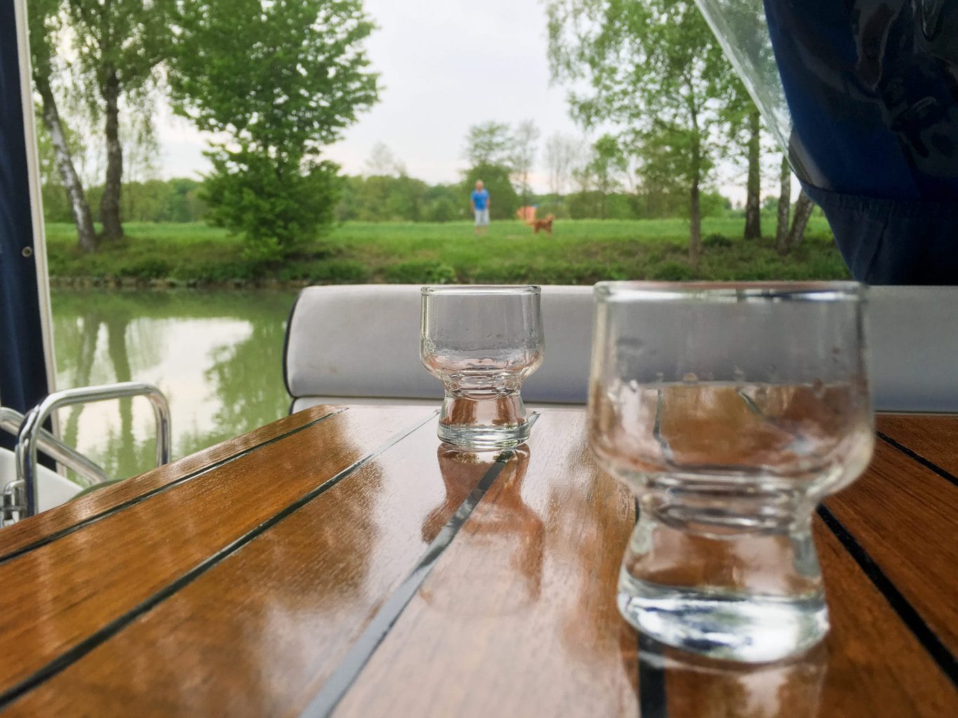 Auf der ‚Südstrecke‘, die wir befahren, verläuft der Kanal als hochgelegte Dammstrecke oberhalb der grünen Wiesen rechts und links von uns.