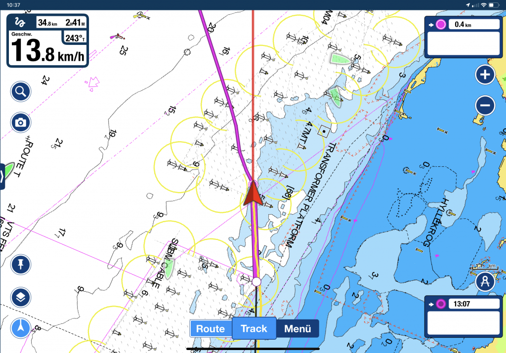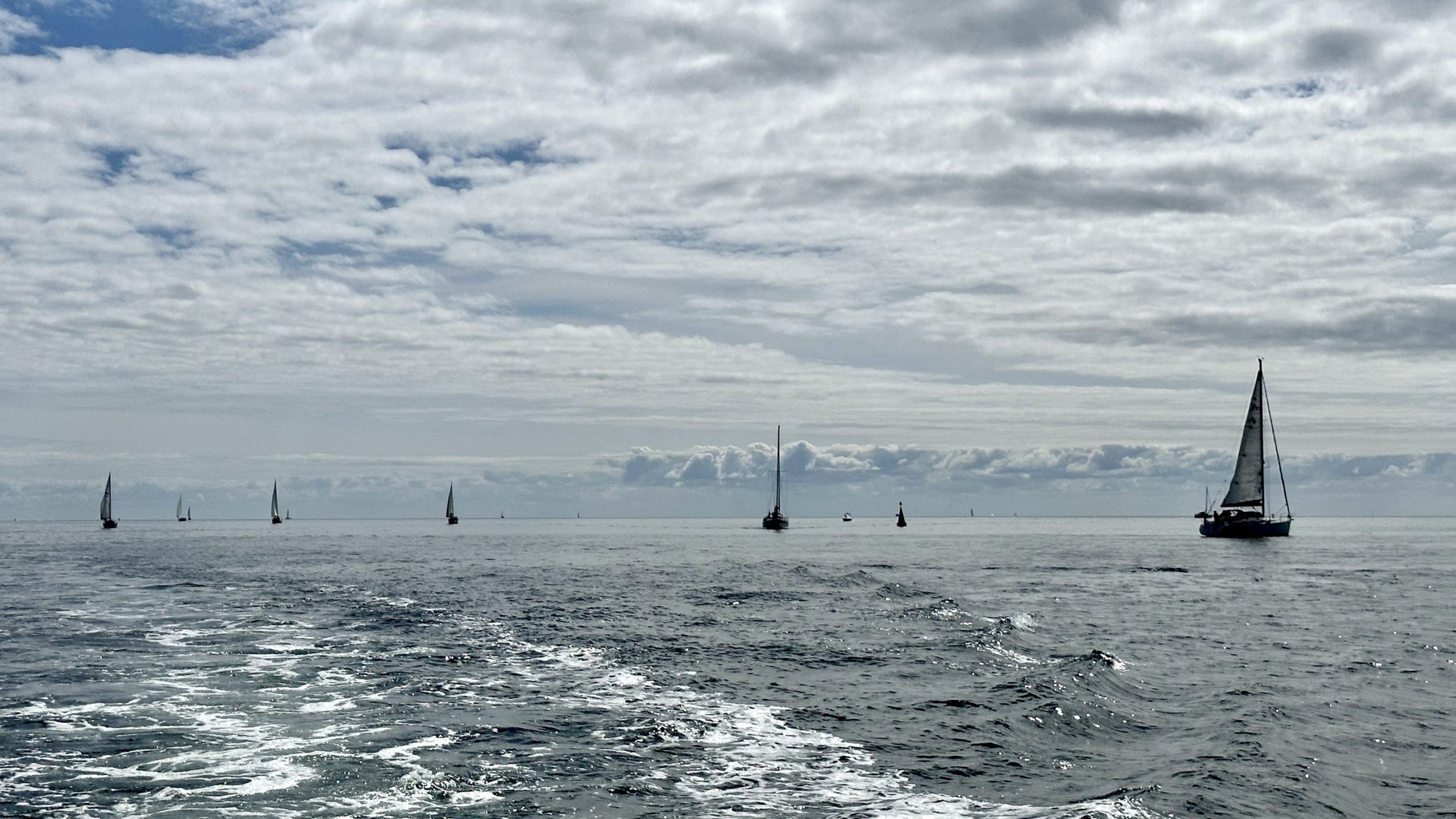 Danach endlich wieder in gewohnter Gleitfahrt und angenehm flachen Wellen über die Kadetrinne zur Sonneninsel Fehmarn.