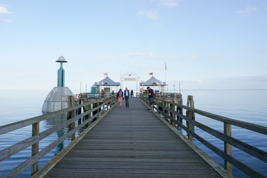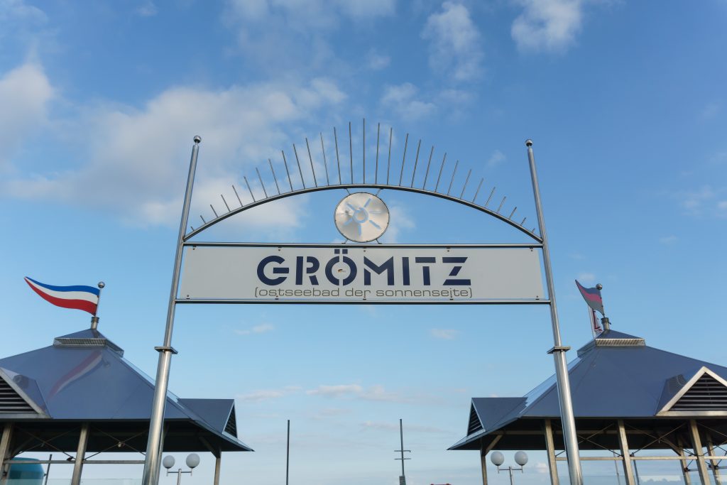 Nach zwei Tagen ununterbrochenem Sturm (Tag & Nacht!) gepaart mit Sonnenschein auf Fehmarn, gibt’s heute wieder ‚unser‘ Wetter. Ca. eine Stunde brauchen wir für unser nächstes Ziel: das Ostseebad Grömitz.
