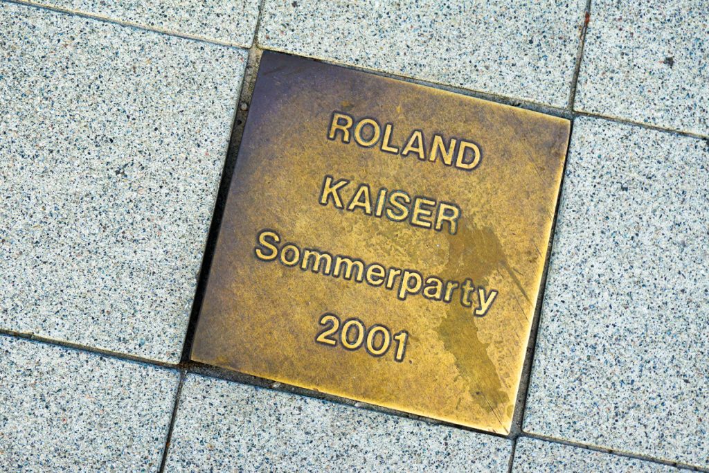 Die Promenade wird auch „Grömitzer Walk of Fame“ genannt, denn in die Pflastersteine sind zahlreiche Messingplatten eingelassen, auf denen sich Einheimische und Besucher verewigt haben.