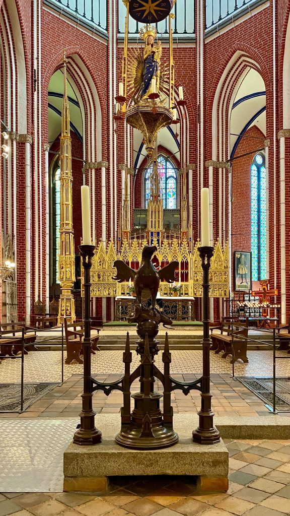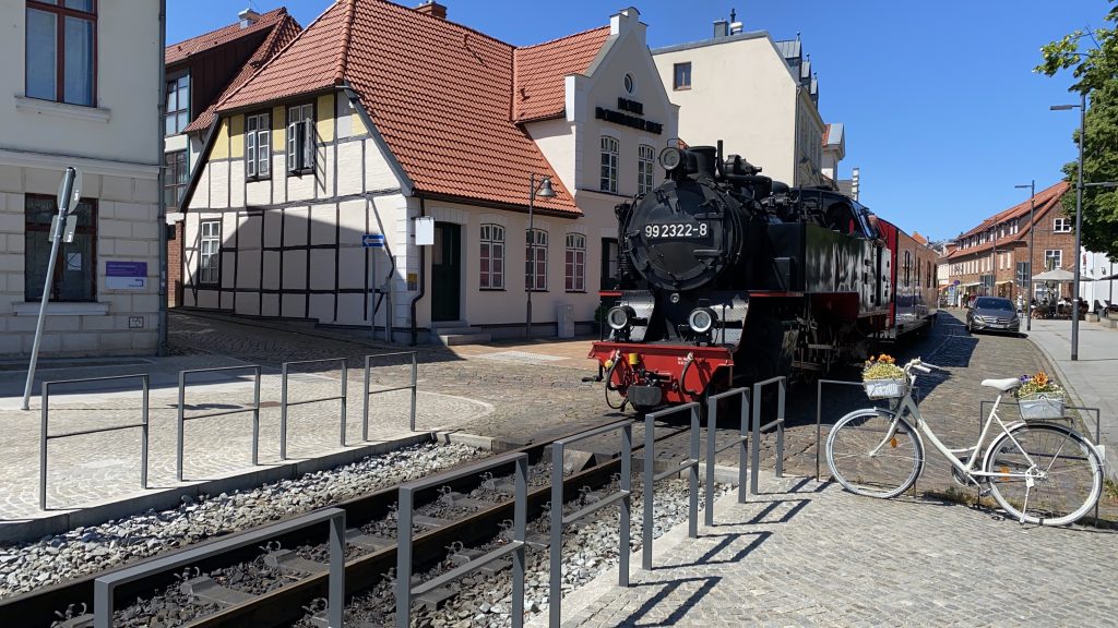 Sie fährt mitten durch die Fußgängerzone von Bad Doberan.