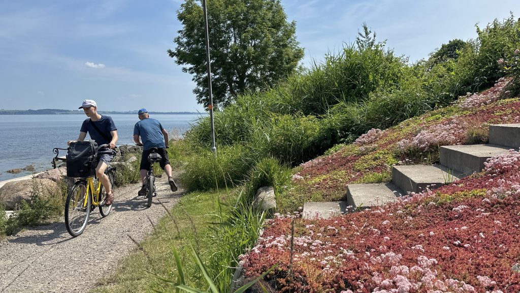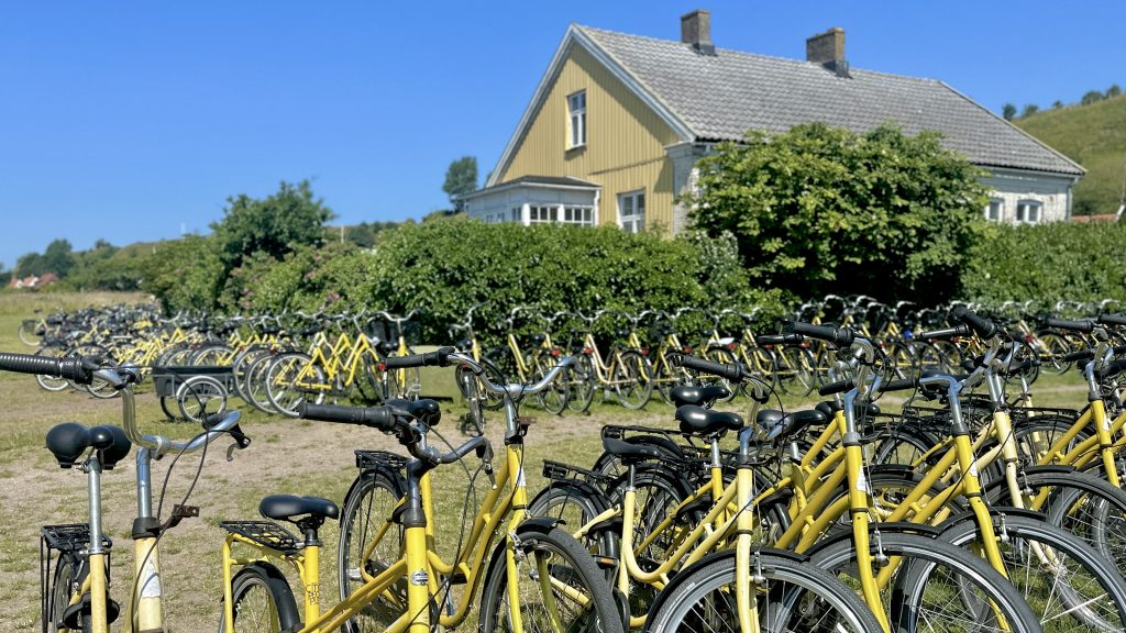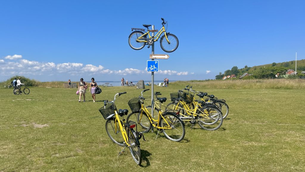 Die kultigen gelben Leihfahrräder sind typisch für Ven und gibt‘s in Massen auf der ganzen Insel gratis zu leihen. Was für ein Glück, dass an solch einem heißen Tag kaum jemand auf die Idee kommt zu radeln … außer uns 😅☀️