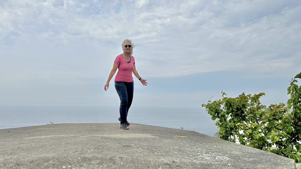 Runter vom Boot, über die Mauer und schon geht‘s über den Badesteg in die Ostsee.