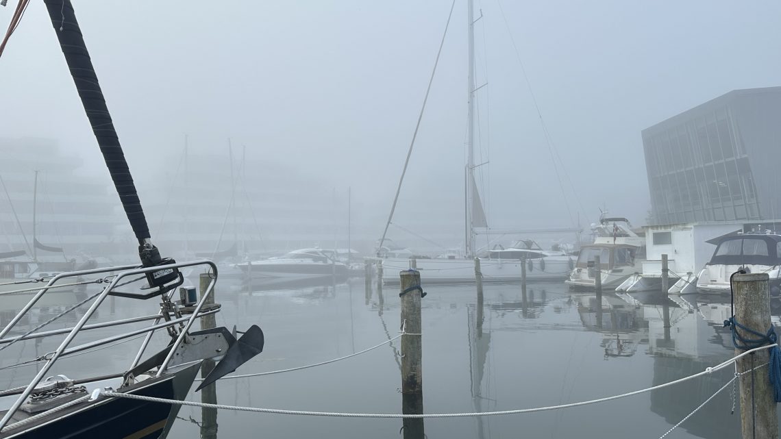 Heute Morgen war mal wieder Geduld gefragt – aber diesmal nicht wegen Wind oder Regen … nein, zur Abwechslung: dichter Nebel. Die Welt um uns herum war in Watte gepackt, Sicht gleich null.