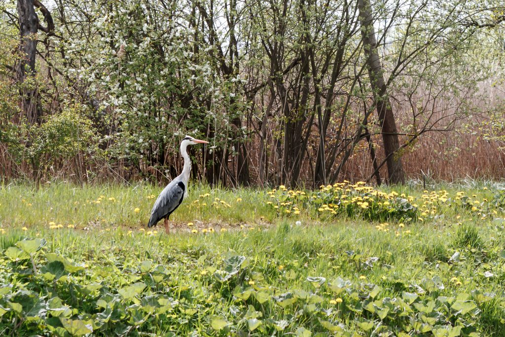 Löwenzahn gesäumte Ufer, frisches zartes Grün der Bäume, Schilfgürtel, fröhliches Vogelgezwitscher und das Nagen der ‚Justins‘ begleiten uns.