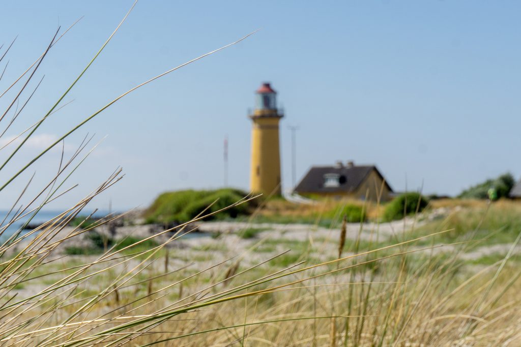 Wahrzeichen ist der 32 Meter hohe Leuchtturm an der Westspitze von Omø.
