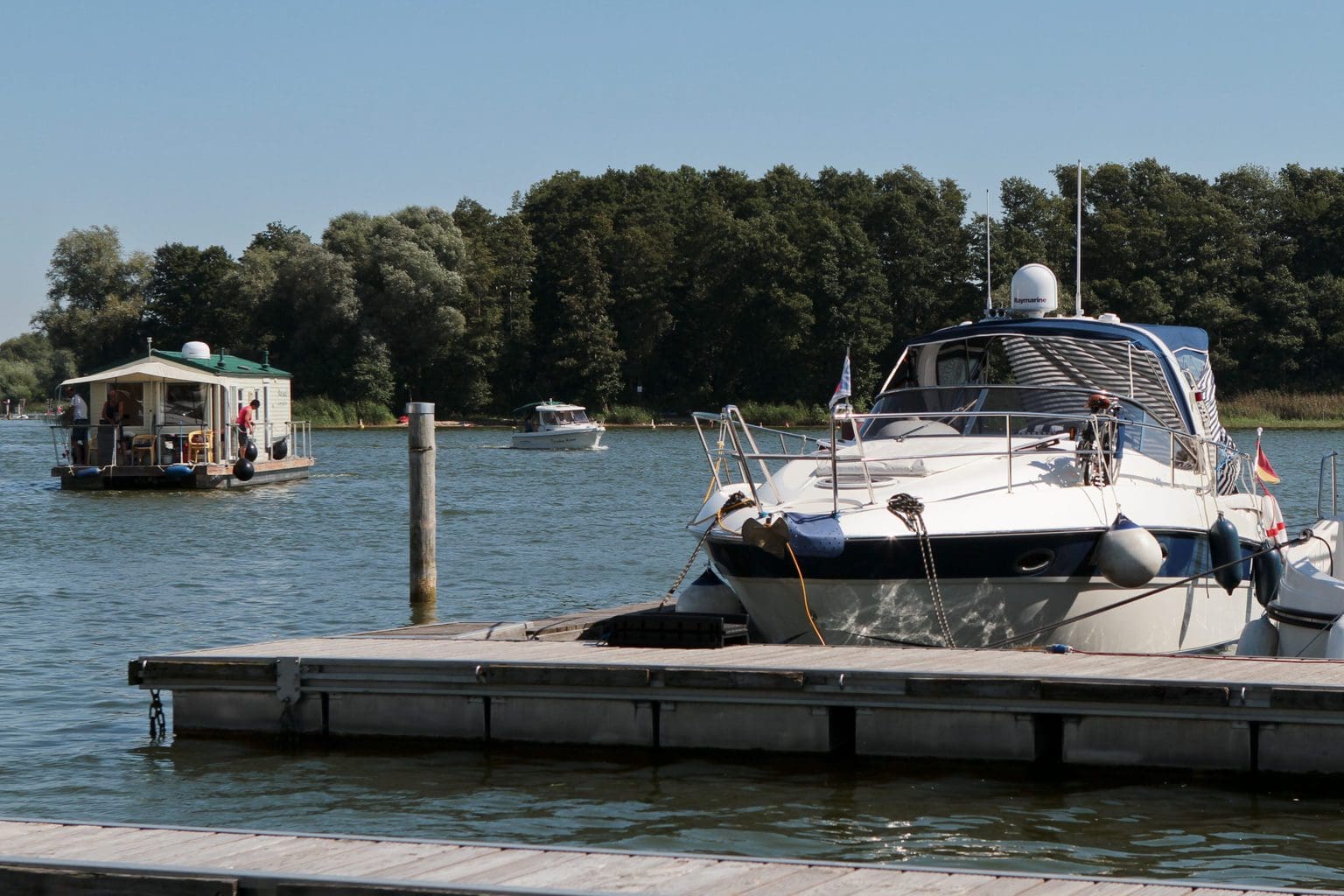 Vom Kölpinsee kommend führt eine schmale aber vor allem flache Fahrrinne in den See, laut Karte 90cm Wassertiefe!