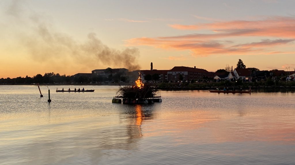 Tradition ist auch, dass um 20 Uhr viele Boote den Heimathafen verlassen (vergleichbar mit unserem heimischen “An- oder Abfahren”), zum Teil mit Lichterketten geschmückt, um im Konvoi in den Guldborgsund gen Norden auszulaufen. Pünktlich zum Sonnenuntergang kehren sie zurück und versammeln sich um die brennende Hexe.