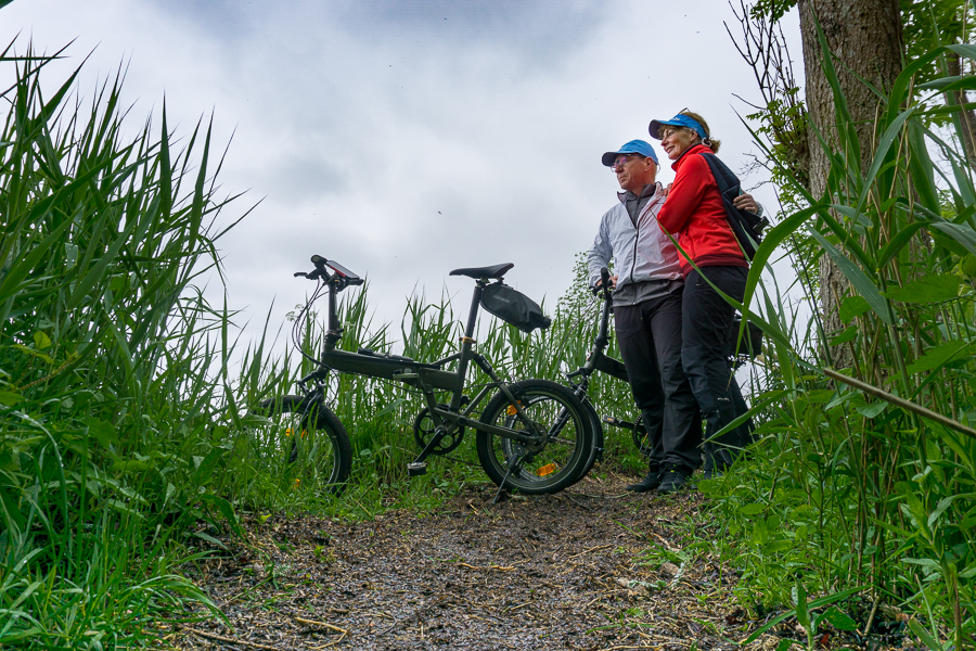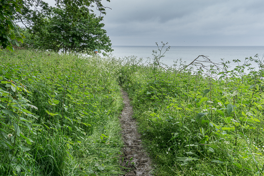 Die Route war mal wieder eine Eigenkreation („Wolfmoot“ statt „Komoot“) und erweist sich als rutschiger zugewucherter Wanderweg – wir hätten besser eine Machete mitgenommen.
