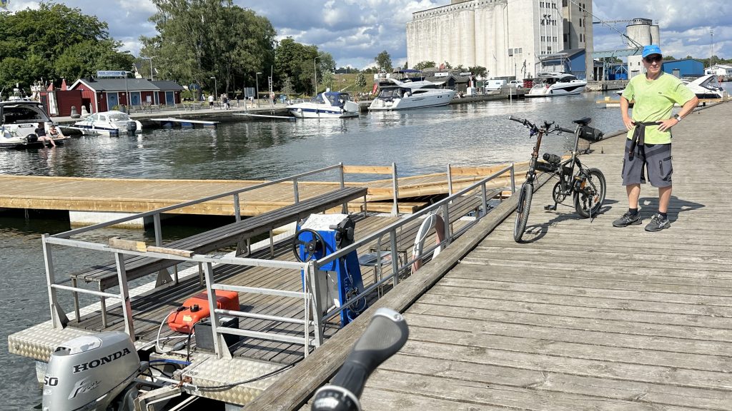 Man lässt sich zum Abendessen mit der kostenlosen Fähre auf die andere Seite des Flüsschens Helge å schippern.