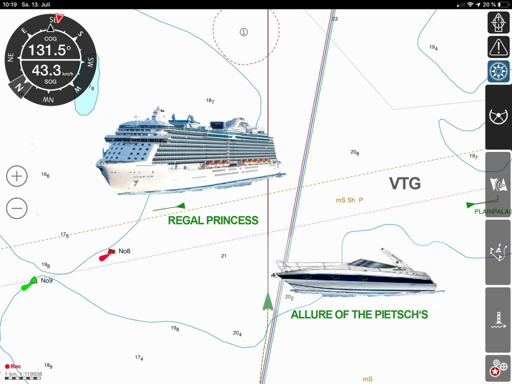 Wir nutzen die ‚Gunst der Stunden‚ und verlassen heute mal unsere Komfortzone in Küstennähe. Mit dem bisher längsten Schlag für die ALLURE (auf offener See) erweitern wir unseren Horizont.