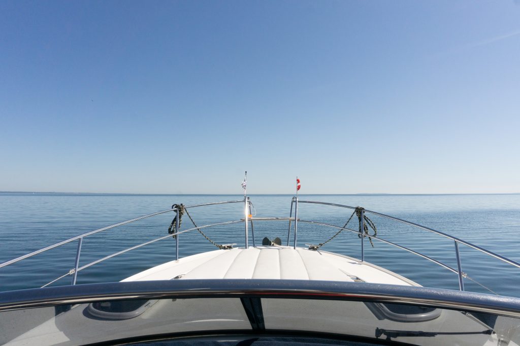 Jetzt ist das Bild ein ganz anderes als die Tage zuvor: das dominierende Blau, die Weite und die Freiheit auf dem Wasser, genau unser Ding. Zumindest, wenn die Randbedingungen stimmen.