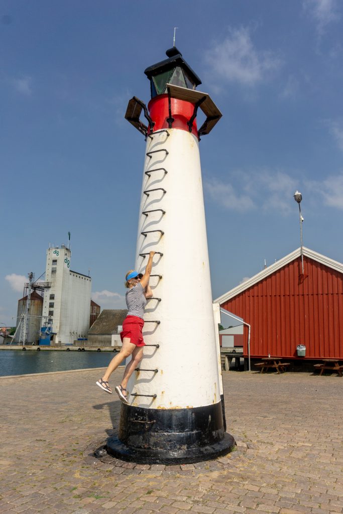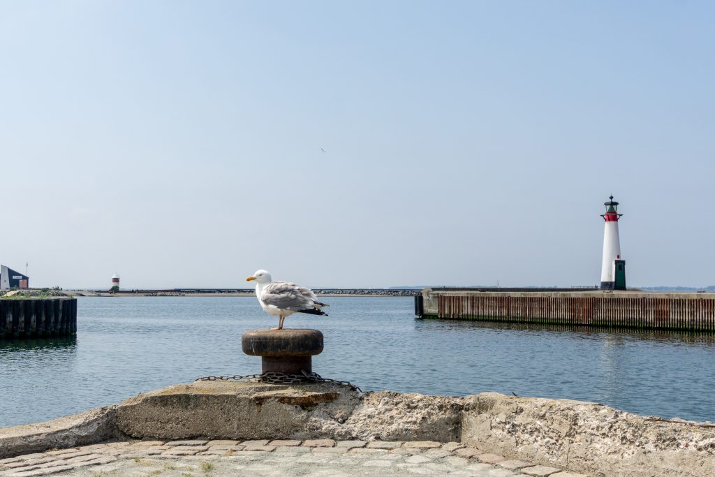 Ganz früh am Morgen legen wir ab in der malerischen Genner Bucht. Es ist diesig, die Sonne versteckt sich noch, aber der 3er West-Wind stimmt, wir sind anscheinend allein unterwegs 😕. Wir überqueren den Lillebœlt – die Meerenge, die Jütland mit der Insel Fünen verbindet – ohne Land zu sehen! Sooo klein ist er also gar nicht, der ‚Kleine Belt‘, und ein bisschen gebellt und geschäumt hat er auch.