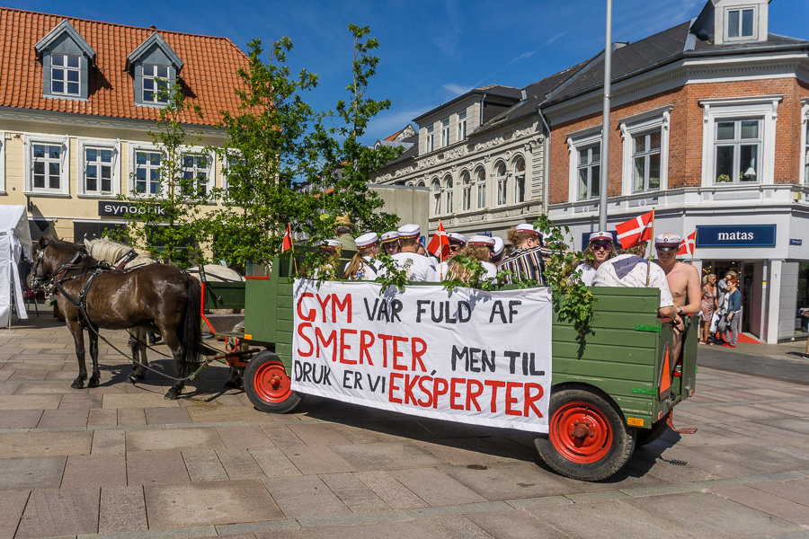 Wer in Dänemark die Hochschulreife erlangt, feiert das mit einer ‚Studentenmütze‘ auf dem Kopf und jeder Menge Alkohol und Gesang.