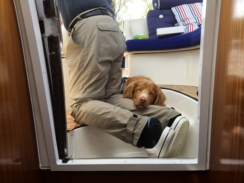 Mit nur ca. 14 km/h werden wir prompt von einem Frachtschiff überholt (Plötzlich hören wir unseren Bootsnamen über Funk und das Überholmanöver wird Dank unseres AIS-Signals angekündigt) …