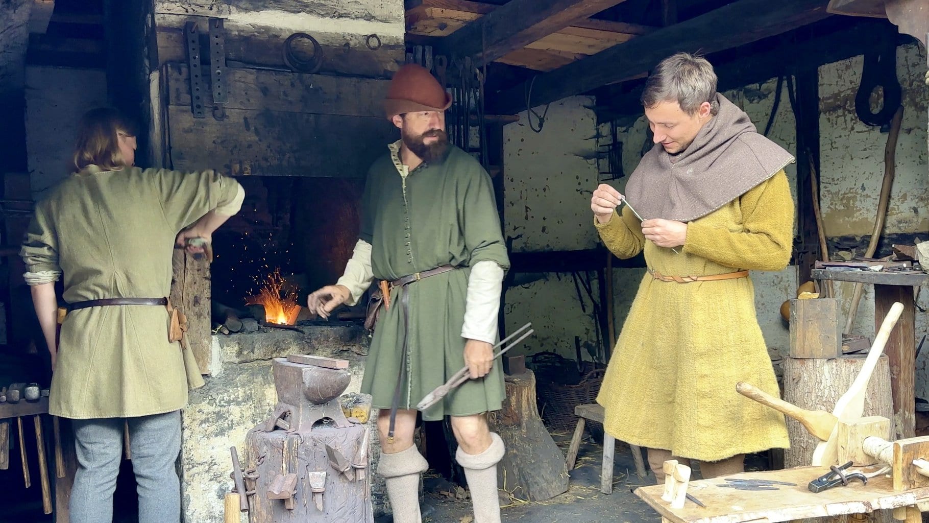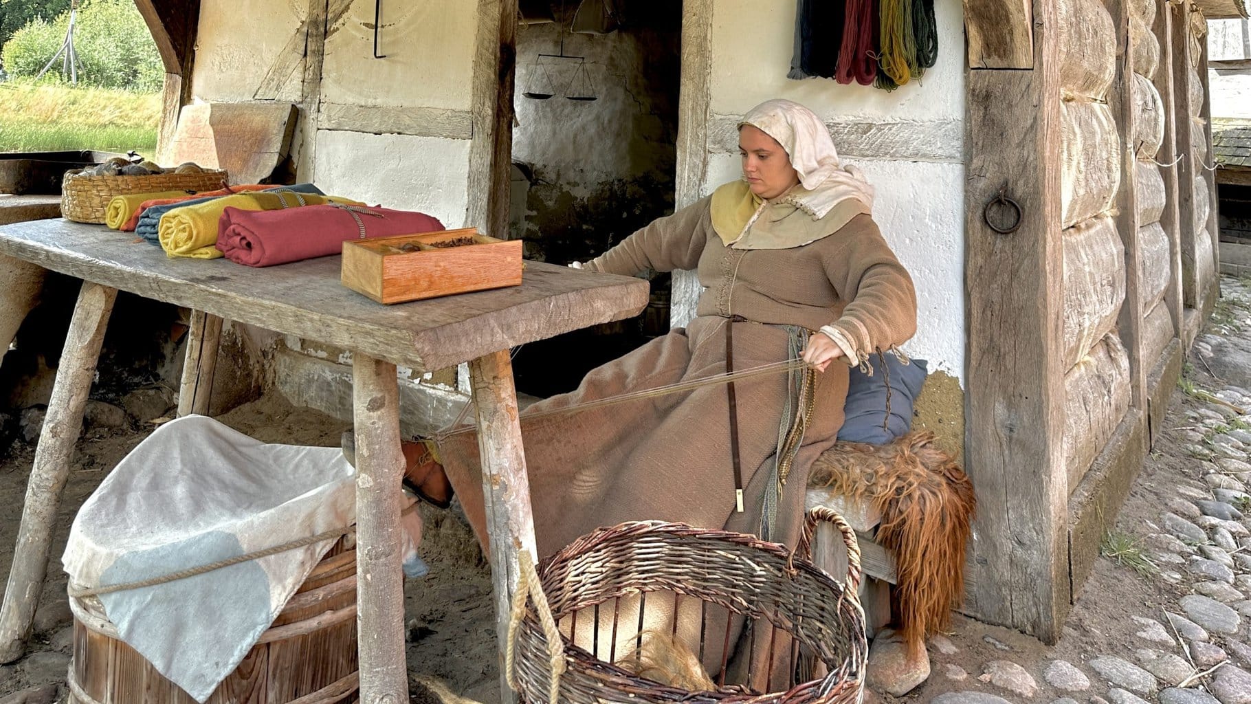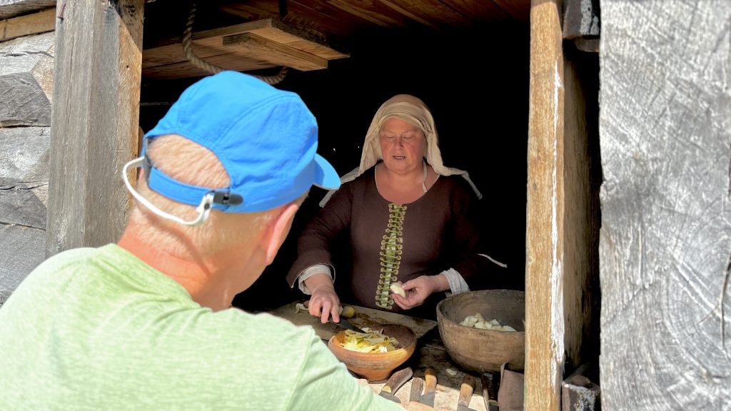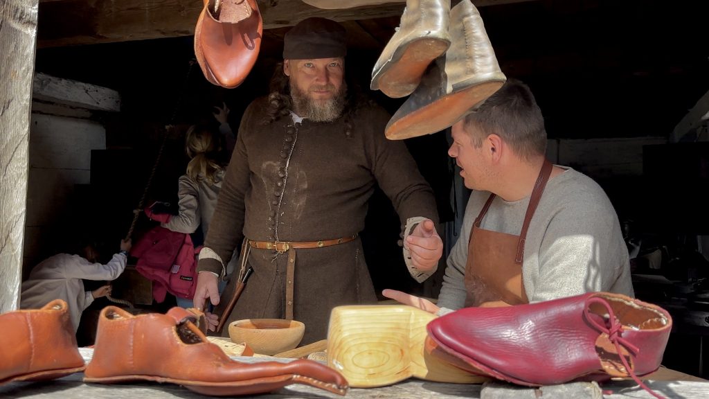 Diese freiwilligen ‚Vermittler‘ schlafen in den vorhandenen Häusern und kochen Ihr eigenes Essen, tragen mittelalterliche, selbstgeschneiderte Gewandung, die authentisch in die Zeitepoche passt. Sogar auf die Art der Schuhschnallen (Doppel-D 😉) wird geachtet! Ab 16 Uhr gehört die Stadt ihnen.