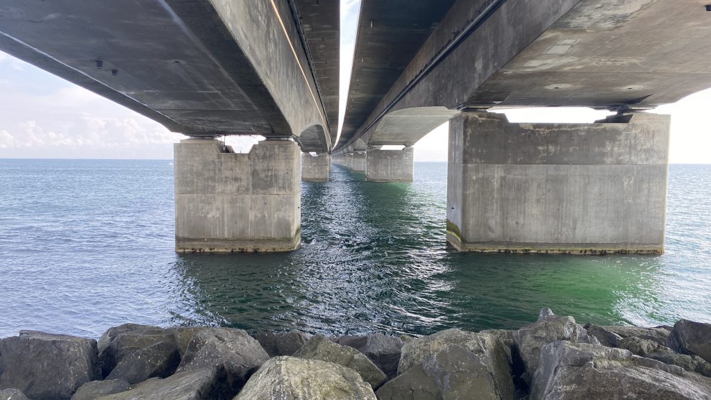 Das 18km lange gigantische Bauwerk ruht auf 63 Pfeilern, in der Mitte stützt sich die Storebælt-Brücke auf das Inselchen Sprogø. Der Ostteil der Brücke ist eine Hängebrücke, die an zwei 254m hohen Pylonen befestigt ist. Es entsteht somit eine Durchfahrtshöhe von 65m, sodass auch riesige Schiffe passieren können. 1998 wurde die Brücke fertiggestellt.