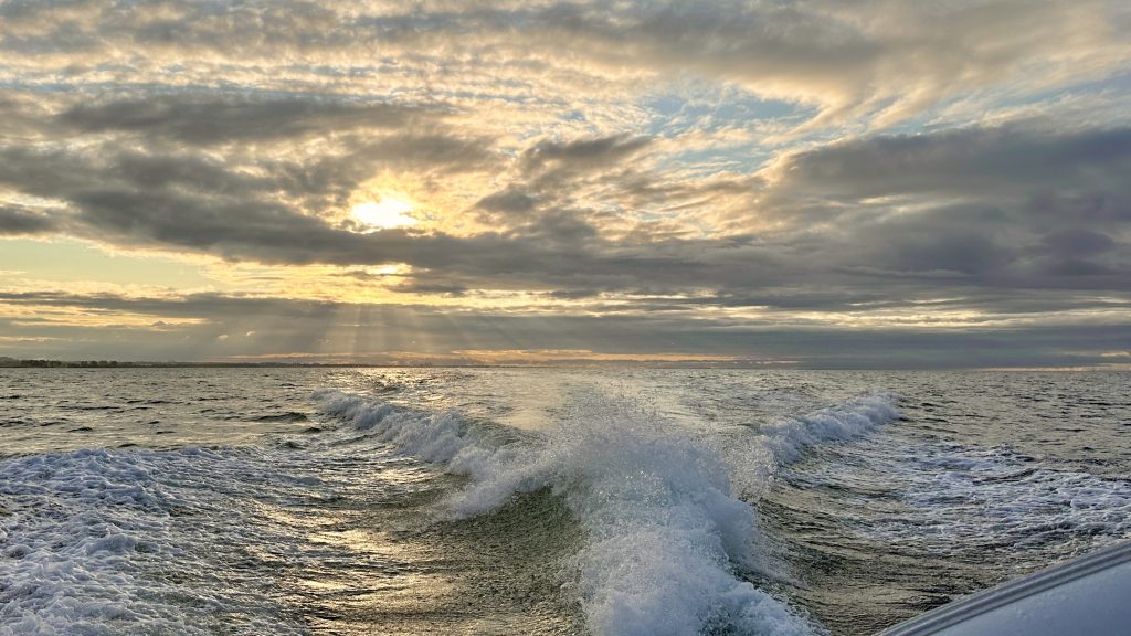 Es wird mal wieder ein Ritt gegen die Wellen, gegen den Wind ( 4 bft – Windrichtung West😬) und ganz schön anspruchsvoll für den Captain und unsere zwei Grünen unter Deck.