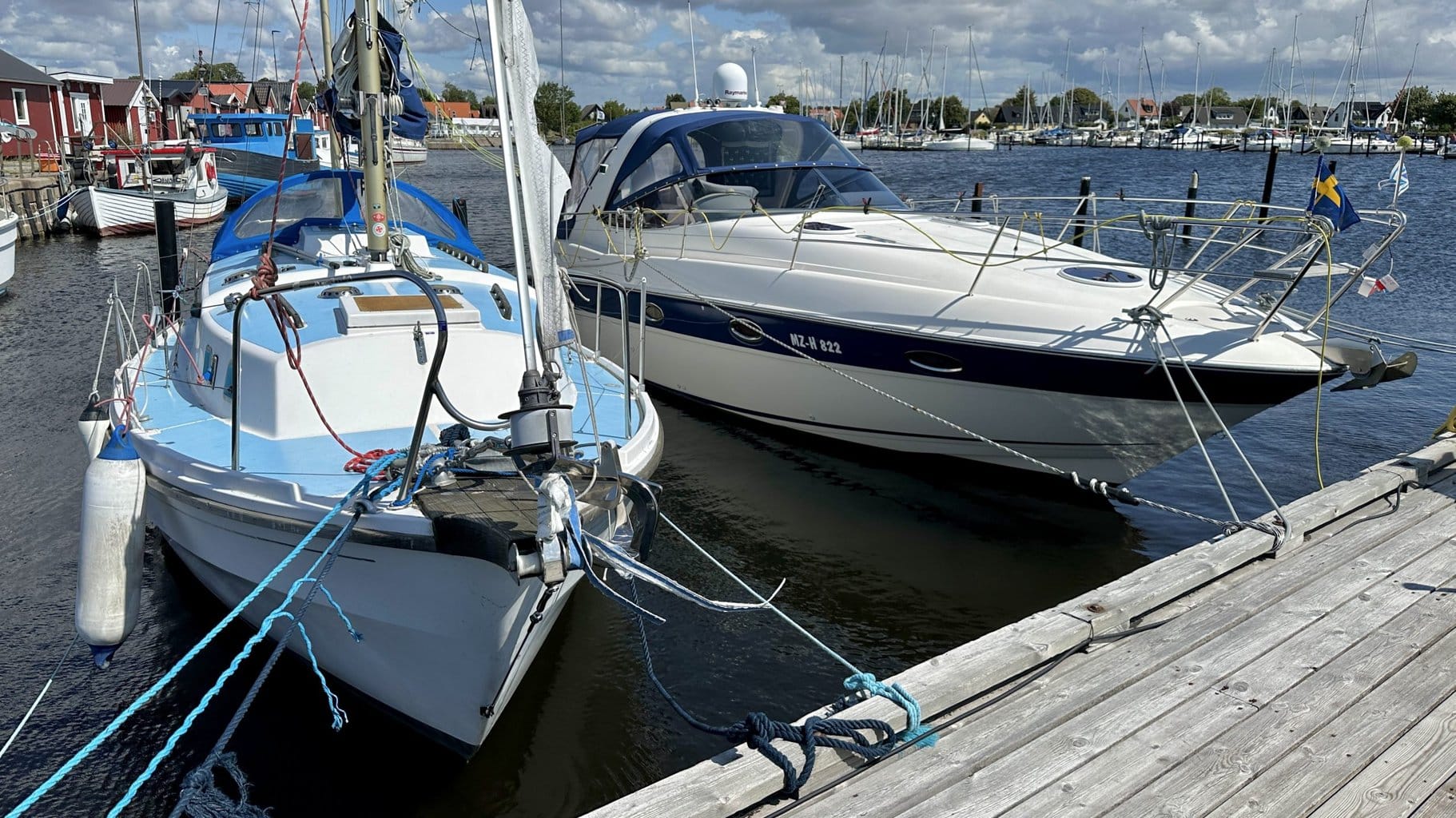 Jetzt herrscht allgemeine Aufbruchstimmung in Ystad – fast wie im Konvoi verlassen die Boote den Hafen.