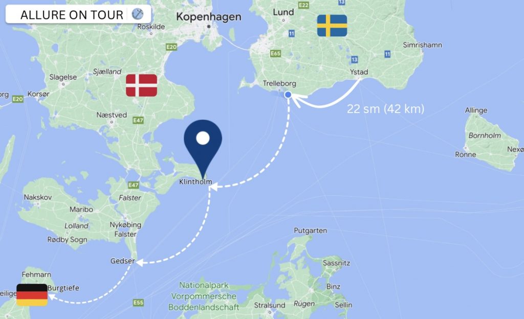 Mehr InformationenUnsere Allure durchpflügt die Baltic Sea … mit voller Kraft geht’s an der Südküste entlang. Vorbei an Smygehuk, dem südlichsten Punkt Schwedens, weiter nach Gislövs läge bei Trelleborg.