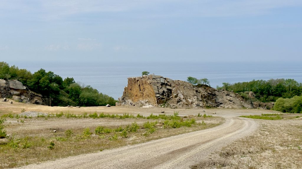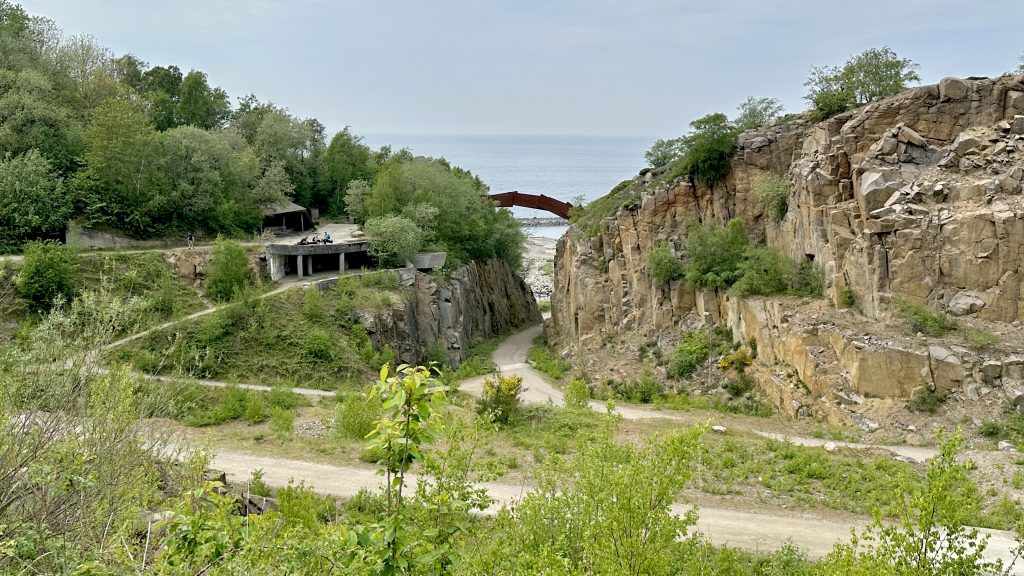 Fast im Norden an der Westseite Bornholms bei Vang stoßen wir auf einen ehemaligen Granitsteinbruch mit gewaltigen Steilhängen und dem ungewöhnlich gelegenen Hammer Havn. Er ist der ehemalige Anleger der Hammershus-Burg, die oben auf der felsigen Steilküste thront und die ganze Küste überragt.
