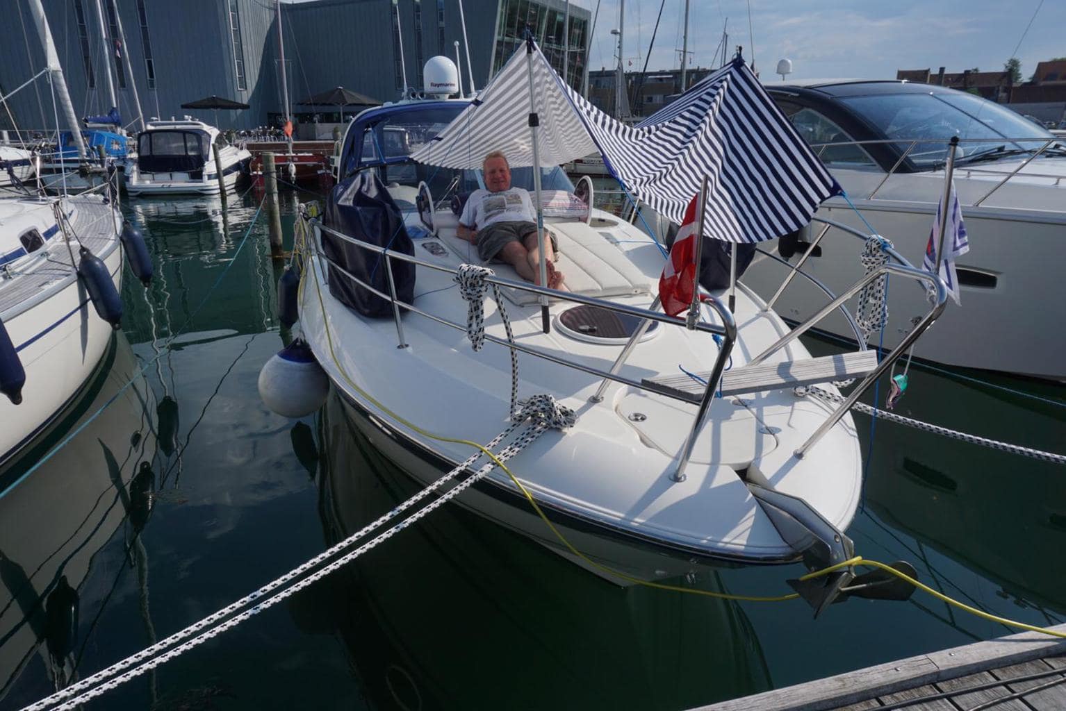 Direkt auf der KulturØen (Kultur Insel) von Middelfart finden wir einen Liegeplatz in dem neuen, sehr schicken privaten Jachthafen (Nyhavn1), bei dem die Boxen im Halbrund angeordnet sind.