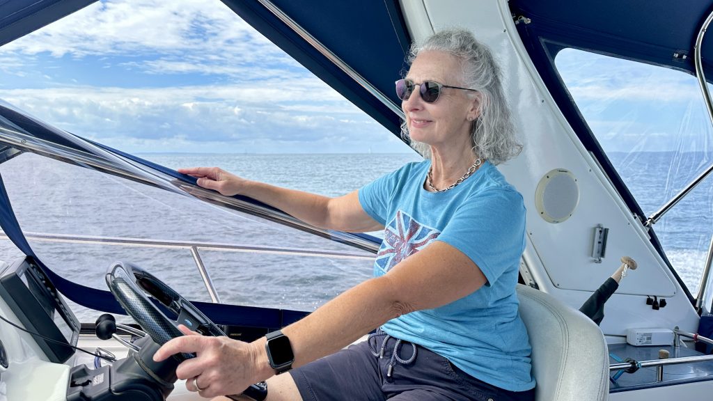 Das Warten hat sich also gelohnt, und wir surfen entspannt auf achterlichen Wellen über die Kieler Bucht in Richtung deutscher Küste – alles richtig gemacht!