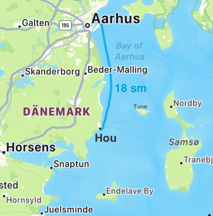 Wir sagen „farvel“ zur bunten Vielfalt von Århus und gleiten gen Süden – Kurs: Hou (oder Hov, wie es auch genannt wird 🤔).
