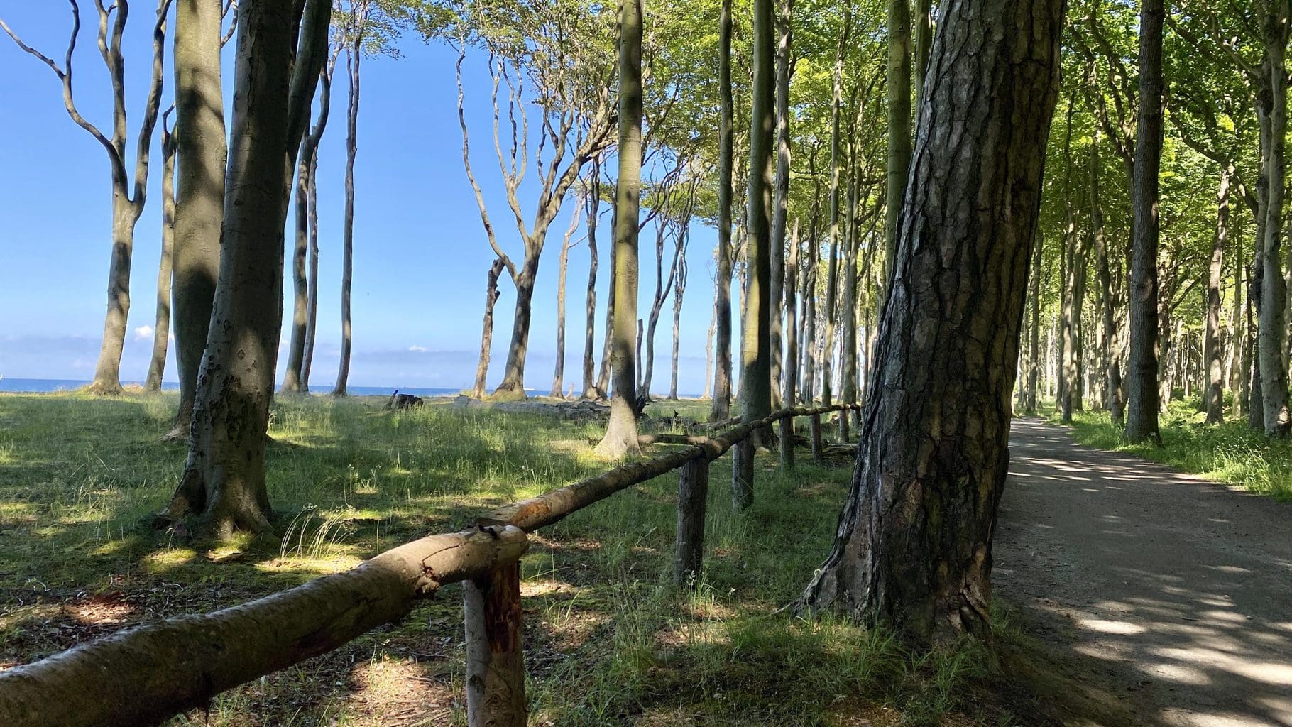 Die Seeluft mit ihrem hohen Salzgehalt und der permanente Wind an der Küste sorgten im Laufe der Zeit dafür, dass viele Buchen, Eichen und Eschen teilweise gespenstische Formen annahmen. Hier möchte sich bestimmt niemand in der Dämmerung verirren.