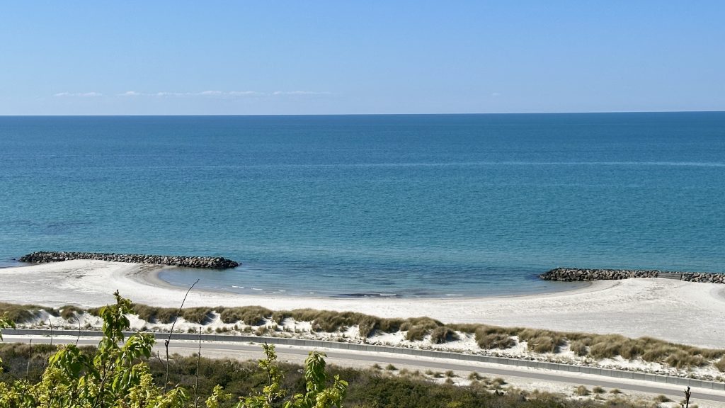 Wir genießen die Sonne, den Wind und die etwa 25 km lange Küste mit weißem Sandstrand. Auf das Bad im noch sehr frischen Kattegatwasser verzichten wir lieber noch.