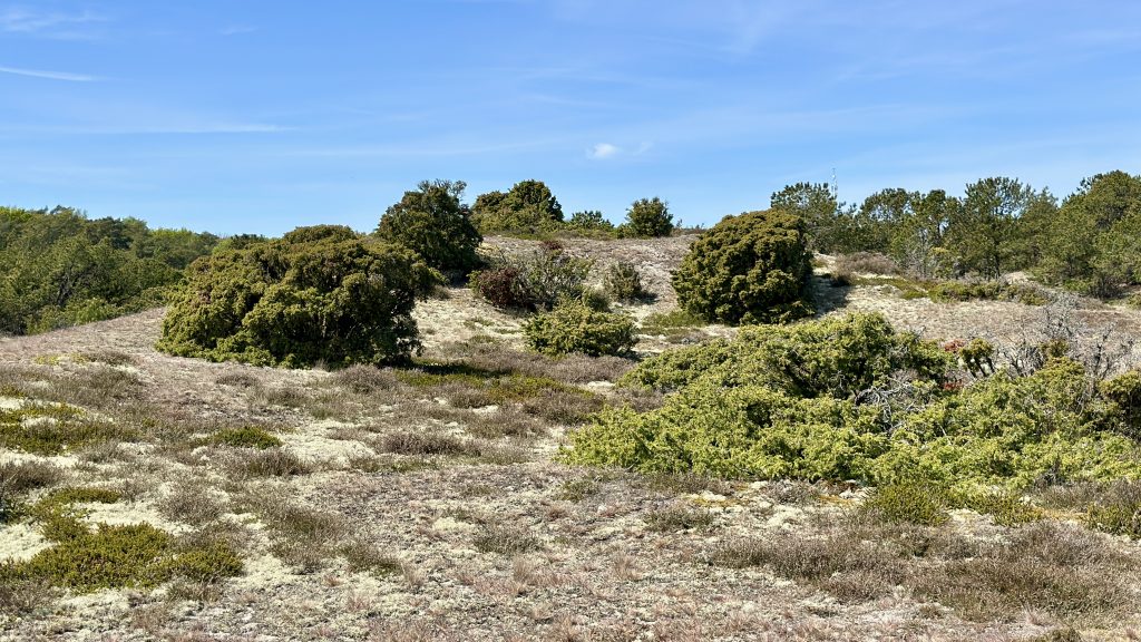Der Ortskern von Anholt liegt im Westen, während der Rest der Insel größtenteils aus Sanddünen und Flechtenlandschaft besteht und daher auch „Ørkenen“ (die Wüste) genannt wird – Nordeuropas größte Flechtenheide.