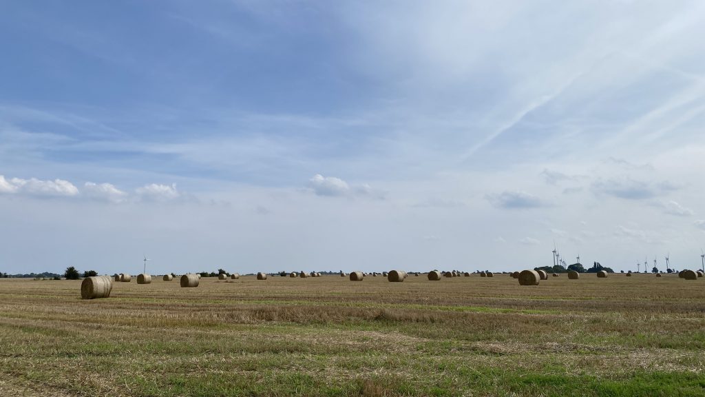 Übers Land querfeldein radeln wir zurück in unseren Hafen Orth.