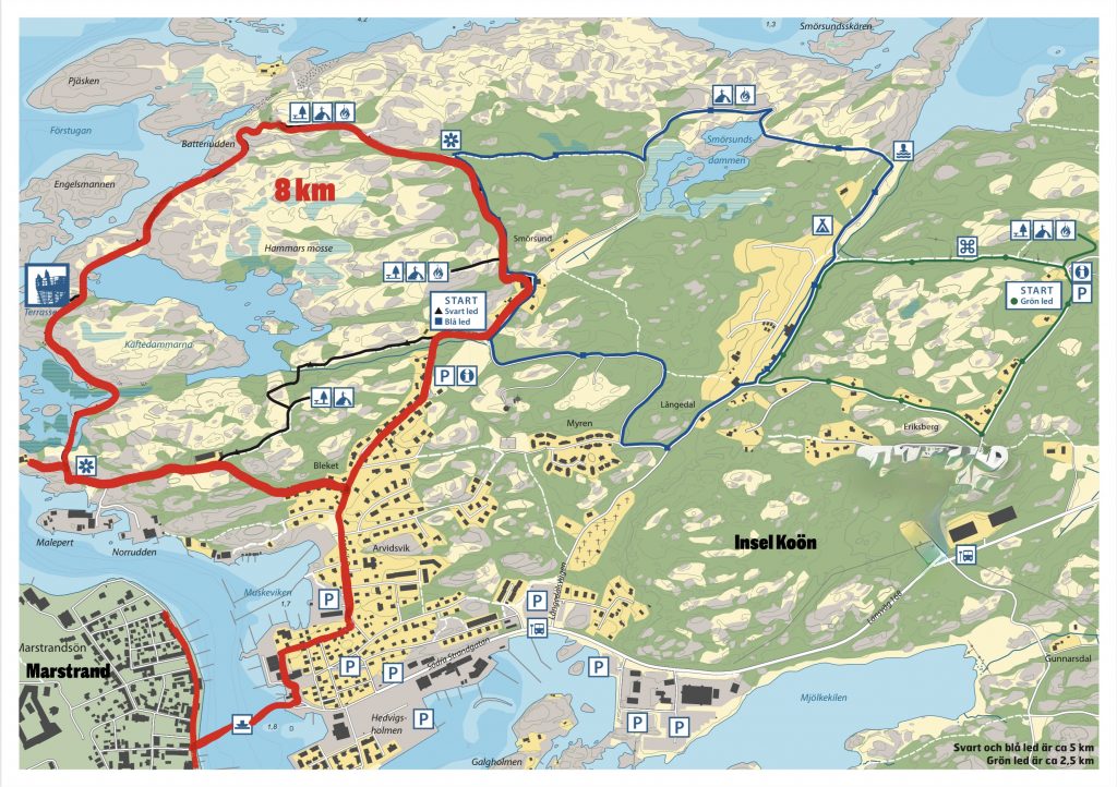 Auf der Insel Koön (die östliche Hälfte von Marstrand) gibt es drei Wanderwege mit verschiedenen Schwierigkeitsgraden, die auf uns warten.