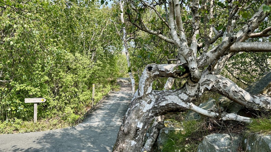 Über Holzstege, Treppen und Brücken führt uns der Trail wie erwartet durch überwiegend felsige Landschaft. Zwischendurch gelangen wir aber auch durch eine feuchte, moorige Tiefebene.