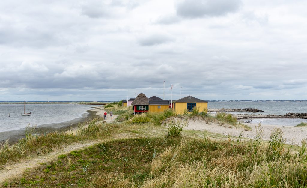 Die bunten Badehäuschen von ‚Eriks Hale‘ sehen noch nahezu so aus wie vor 100 Jahren – farbenfroh, gestreift, mit oder ohne Sprossenfenster und gemütlichen Veranden. Hier verbringen die Ærøer Familien im Sommer ihre Zeit.