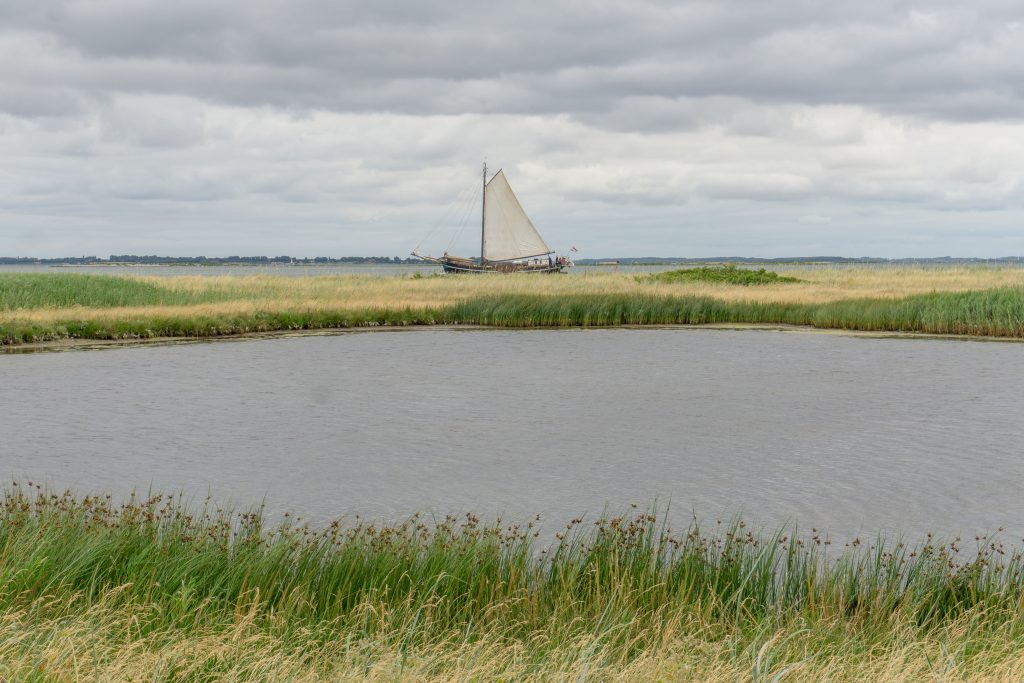 An den Häuschen auf der Landzunge entlang führt ein kleiner idyllischer Trampelpfad durch ein herrliches Naturschutzgebiet zur Insel Frederiksøen mit dem bekannten ‚Kalkofen‚. Von hier aus sind es nur wenige Meter bis in den gegenüberliegenden Hafen, aber es bleibt nur der Rückweg über den kilometerlangen Landhaken.